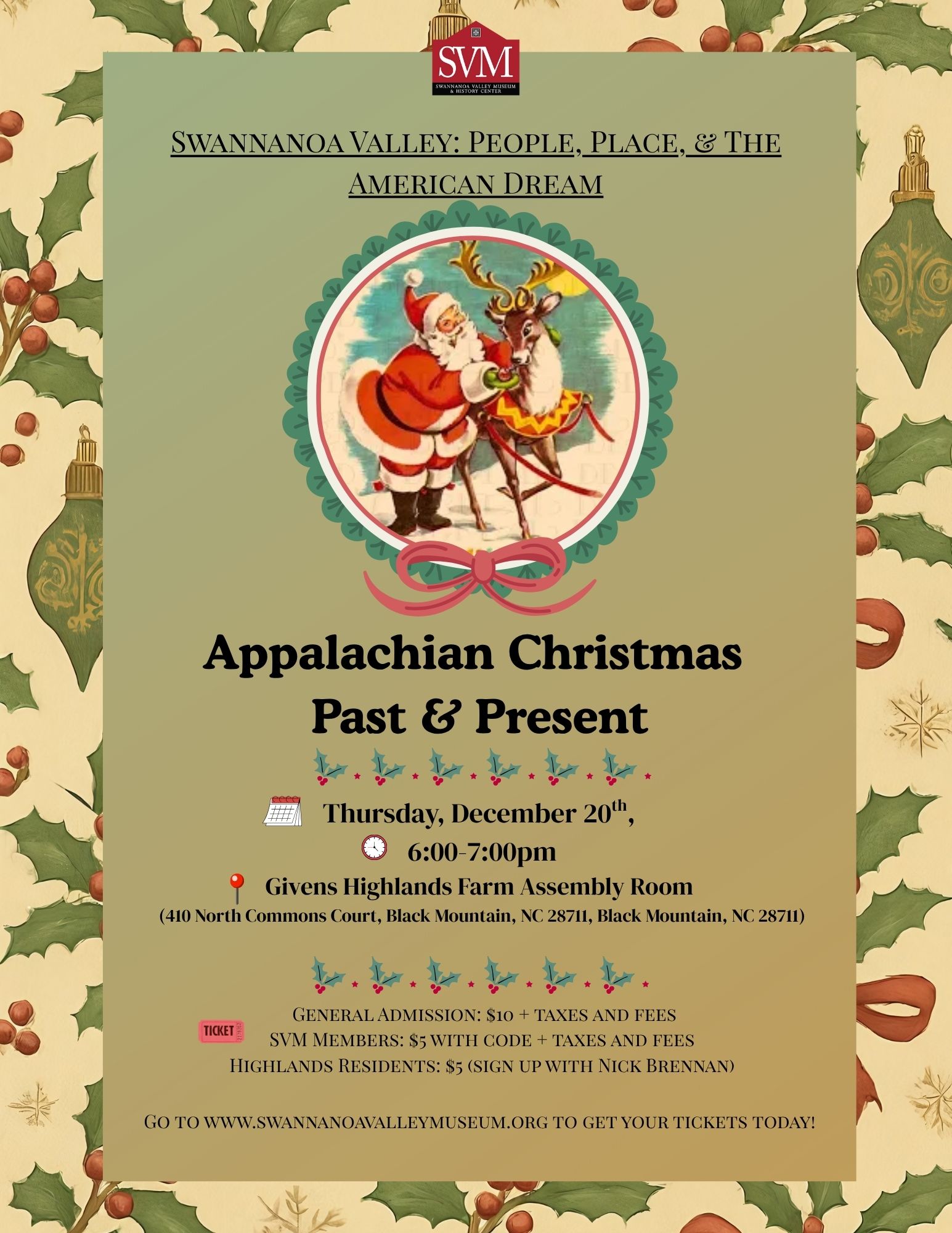 Have you ever heard of “Old Christmas”? Want to know why we use mistletoe as a holiday decoration or place a candle in the window? Join the Swannanoa Valley Museum this December to uncover the myths, meanings, and practices behind a traditional Appalachian Christmas.