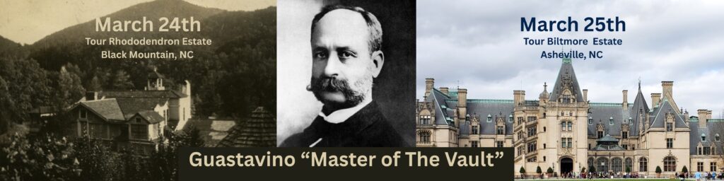 March 24th | Black Mountain, NC Our journey begins at the Rhododendron Estate ( Christmount Black Mountain, NC ), the 600-acre estate Guastavino created after Biltmore was completed. This was his sanctuary and his testing ground.