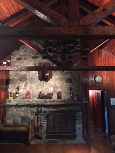 Just a few hundred feet beyond where the man-made fountain, known as Andrews Geyser, shoots water 80 feet into the air lies the historic Round Knob Lodge. Built in the 1930s by Southern Railroad executives as a rustic mountain retreat, the 6500-square-foot lodge replaced the ritzy Round Knob Hotel, which served railroad passengers and employees from the 1880s until it burned in 1903.